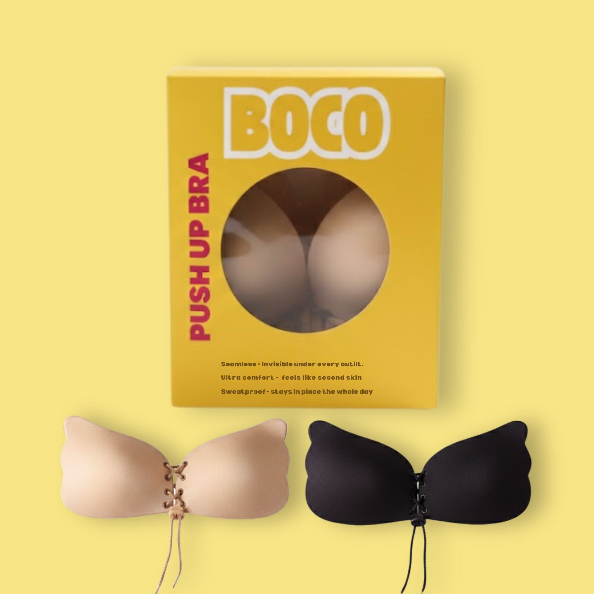 Krijg direct een push-up en een natuurlijk voller silhouet met de BOCO Push-Up BH . Onze silicone Push-Up BH accentueert je decolleté en blijft volledig onzichtbaar onder strapless, rugloze en diepe V-vormige outfits.
